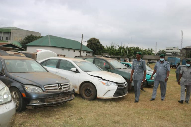 “The contrabands include 34 different brands of both new and used vehicles laden with banned items such as second hand clothes, foreign parboiled rice and Indian hemp