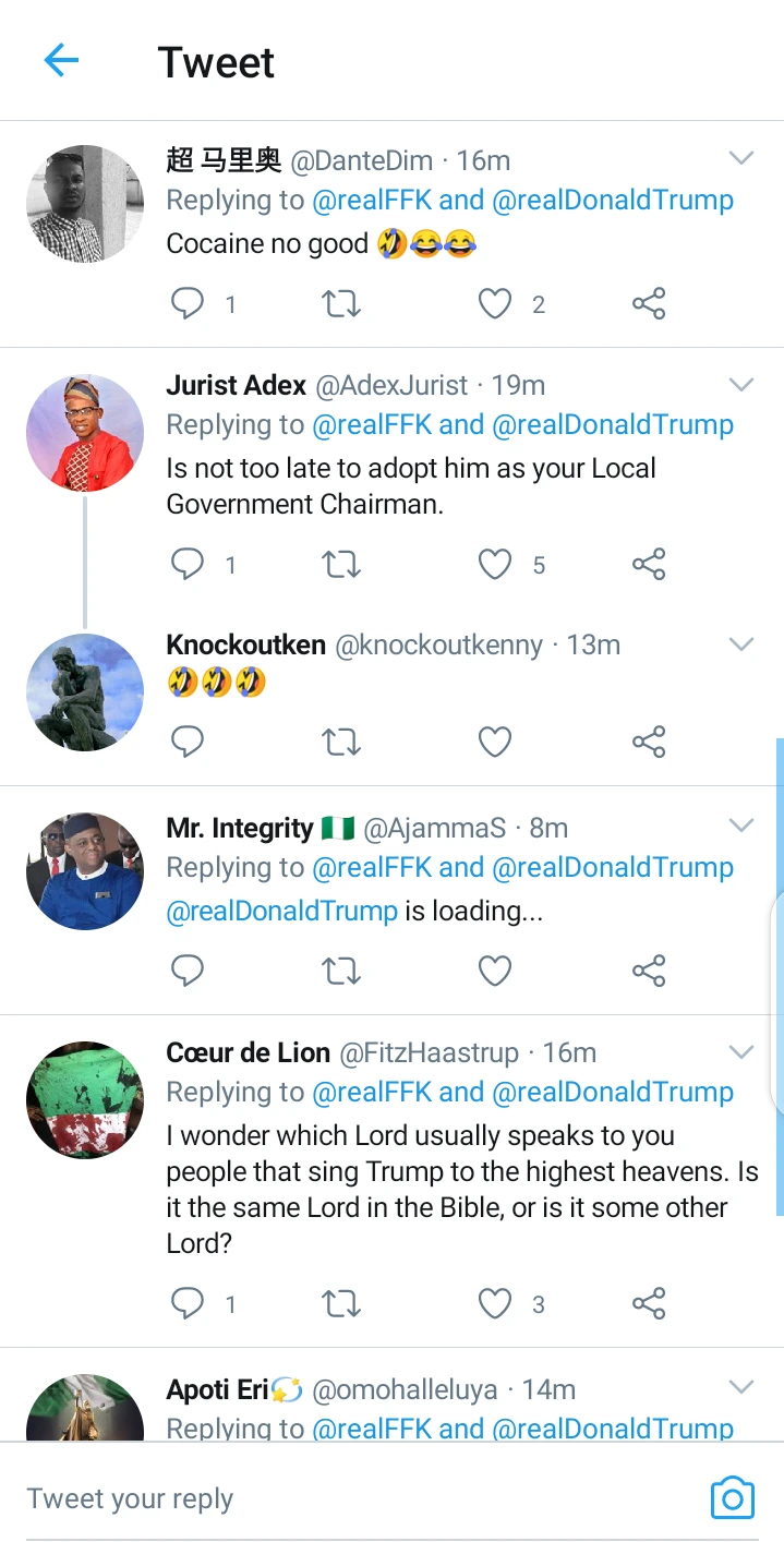 One man who has maintained a strong support and faith in president Donald Trump despite loosing the 2020 United States presidential election to his main rival, Joe Biden, is Femi Fain-Kayode.