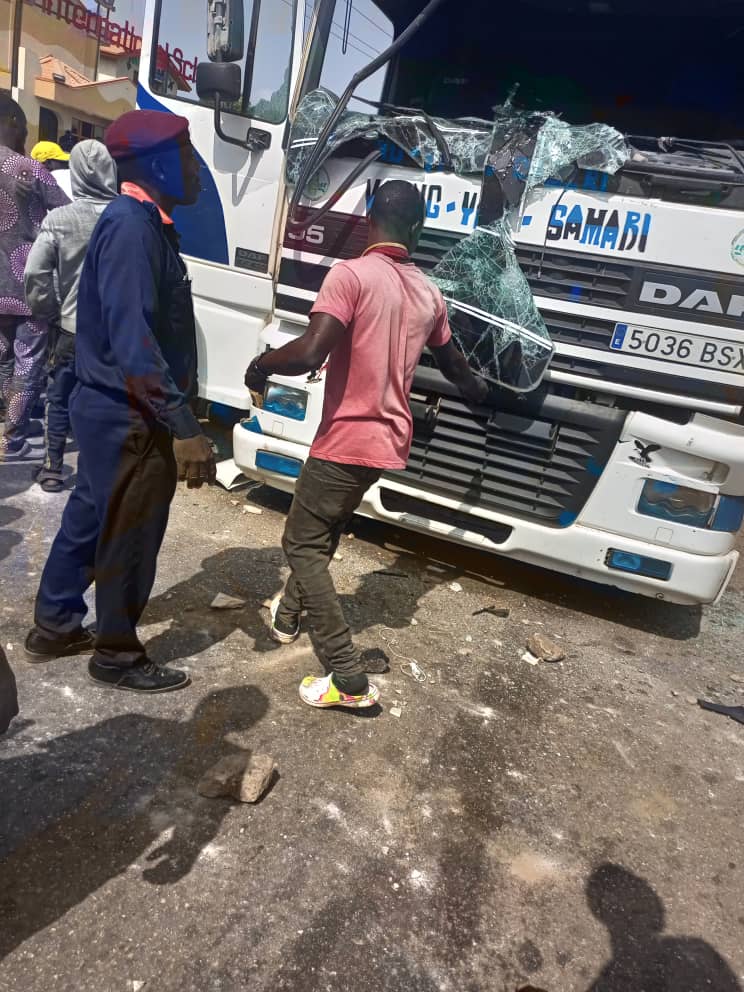 It was gathered that the truck driver on speed to escape from the scene of the accident, which occured at about 10:15 hours on Thursday at post office ran out of luck before Offa Garage as he was attacked by angry mob who almost set the vehicle ablaze and beat him messlesly.