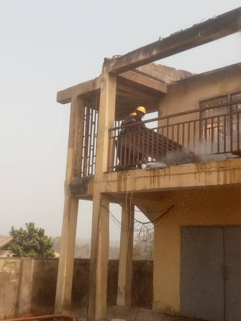 “Men of the Kwara State Fire Service were called out to put the fire out at Mini-Estate Beside Town Hall, by one Mr Abdulqodir at about quarter past eleven this morning.