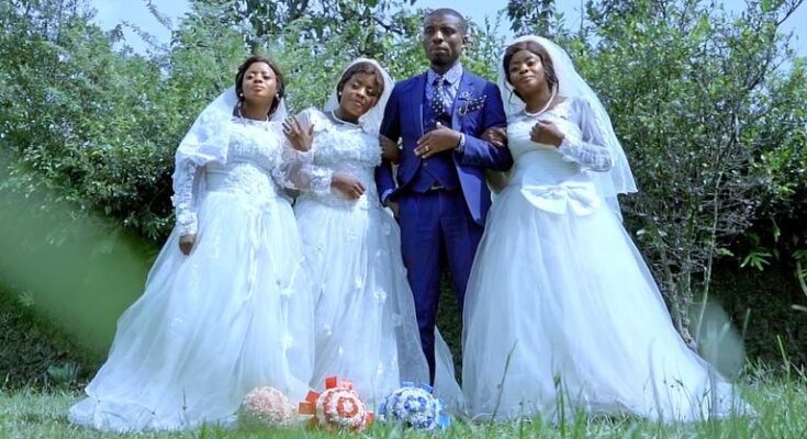 Luwizo, a 32-year-old got married to triplets, Nadege, Natacha, and Nathalie, in one special wedding ceremony on the same day.