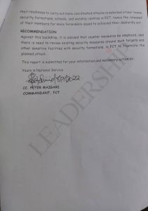 The leaked memo further warned that taking into consideration the recent attack on Kuje Prison in Abuja, which lasted for “good two – hours without any security resistance indicates their readiness to carry out more coordinated attacks in selected cities/towns, security formations, schools and worship centres in FCT, hence the release of their members for a more formidable squad to carry out the dastardly act.”
