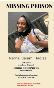 Miss Hadiza Salami, a 400 level student of Fountain University, Osogbo has been reportedly declared missing.