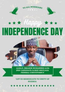 “I want to use this medium to urge the good people of Ilorin West/Asa local Government Areas of Kwara State, all Kwarans and indeed the entire Nigerians to rededicate themselves, remain steadfast and resolute for unity and progress of Nigeria.