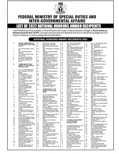 The National Honours Award Investiture ceremony at the International Conference Centre, (ICC) in Abuja on Tuesday was in recognition of Nigerian citizens and foreign nationals who have distinguished themselves in their respective professions contributing to the national development.