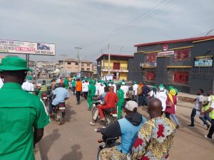 The road walk, which kicked off at the office of the NPC off Ahmadu Bello Way in llorin, took the participants to Challenge area through Post Office, Maraba, Emir’s road, Sabo-Oke and Government House in llorin metropolis.