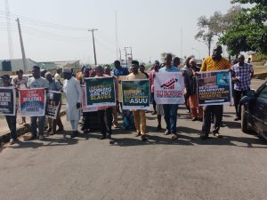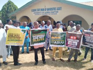 Members of the Academic Staff Union of Universities (ASUU) of the University of Ilorin chapter protested what they called casualization of intellectual workers in the country.