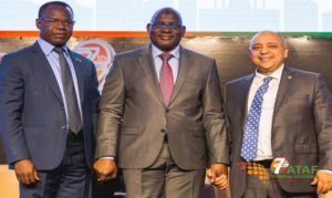 Hand-in-hand to foster right tax revenue utilisation in Africa: L-R: Chairman ATAF and Commissioner General, Togo Revenue Authority, Philippe Kokou Tchodie, Executive Chairman of FIRS, Muhammad Nami and the Executive Secretary of ATAF, Logan Wort at the unwinding of ATAF 7th General Assembly, in Lagos, Nigeria.