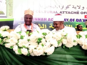 Kabiesi Olomu of Omupo, Oba Adebayo Yakub Buari, having a tete-a- tete  with the Grand Khadi, Kwara state Shariah Court of Appeal, My Lord, Justice Abdullateef Kamaldeen @ this year’s Quranic recitation and memorisation grand finale,held at the banquet hall in Ilorin on Sunday afternoon.