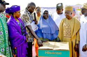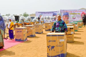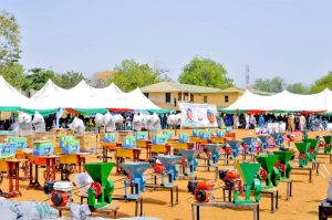 Items distributed were cash, food stuff, sewing machines, hair dryer machines, painting machines, printing machines, tailoring machines, deep freezers, clippers, power generating sets, and a cow, among others.