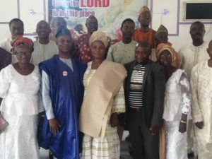 The Celebrant Sister Olubusola 3rd left and her husband Bro Taiwo Fadimidun. The Regional Overseer Pastor David Adegboro and his wife and others at the 60th birthday of the Celebrant on Sunday at the Church headquarters along Airport Road, Ilorin, Kwara State.