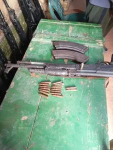 “Items recovered included: one AK-47 rifle, one G3 rifle, one locally-made single barrel pistol, 10 rounds of 7.62mm ammunition, 34 rounds of 5.5mm ammunition, two AK-47 rifle magazine, two G3 rifle magazine and one live cartridge.