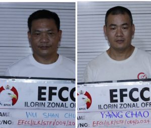 Justice Abimbola Awogboro of the Federal High Court, Ilorin on Friday, March 7, 2025 convicted and sentenced two Chinese, Yang Chao and Wu Shan Chuan to prison for illegal mining of solid minerals in Kwara State.