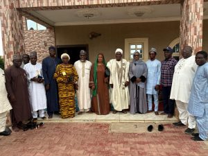 Caption: R-L: Dean Faculty of Agriculture, KWASU, Prof. Friday Apata; Deputy Director Works, Engr Nurudeen Idris; Director, Continuing Education, Ministry for Tertiary Education, Elder Afolayan Joseph Babatunde; SA Students Affairs, Hon. Salami Wasiu Onidugbe; Hon. Commissioner for Tertiary Education, Hajia Sa’adatu Modibbo Kawu; Emir of Ilesha Baruba, Prof. Haliru Idirs Abubakar; SA, Herdsmen, Hajia Aisha Yusuf; VC, KWASU, Prof. Shaykh Lukman Jimoh; DVC Academics, Prof. Christiana Olubukola Dada; Bursar, Alhaji Abubakar Sanni; Dean, Students Affairs, Prof. Abdulrauf Ambali; and Director of Works, KWASU, Engr. Abdulwahab Ayinla during the Commissioner’s visit to the Emir of Ilesha Baruba, in his Palace.