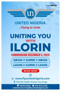 United Nigeria Airlines looks forward to serving Ilorin and making a meaningful contribution to the state’s social and economic development. With every new destination, we reaffirm our mantra of Flying to Unite—bringing Nigerians closer to opportunities, culture, and commerce.