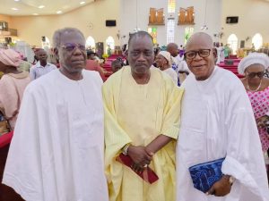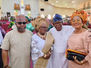 From left Mr The Chief Executive officer Illumination Guards Ltd Mr Paris Agege, the wife of the celebrant Mrs Abigael Ojo, the celebrant, the Chairman and Chief Executive officer Ephoenix Hotels Ilorin Chief Emmanuel Adebisi Ojo and one of his daughter Mrs Agege at the 83rd birthday and Thanksgiving ceremony of the celebrant at St Barnabas Cathedral Ilorinl last Sunday Photo by Kayode Okunola.